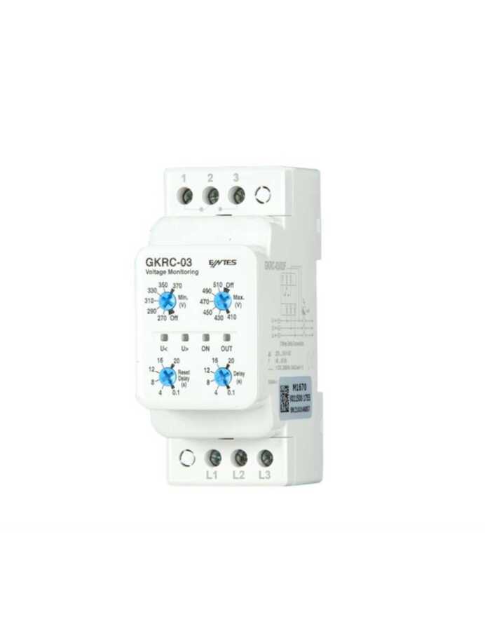 ENTES GKRC-03 Gerilim Koruma Rölesi (Model: M1670)ENTES GKRC-03 Gerilim Koruma Rölesi, özellikle üç fazlı elektrik verilerini elde etmek için tasarlanmış yüksek performanslı bir cihazdır. Model M1670 ile aşırı gerilim, düşük gerilim, faz döngüleri ve faz kaybı gibi elektriksel anormalliklere karşı etkin koruma sağlanır. Bu röle, elektrik motorları, jeneratörler ve endüstriyel çalıştırmak için güvenilir bir güvenlik çözümü sunar.Teknik ÖzelliklerModel Numarası: M1670Gerilim Aralığı: 270 VAC - 510 VACFrekans: 50/60 HzKoruma Anlaşmaları:Aşırı Gerilim: Ayarlanabilir üst sınırDüşük Gerilim: Ayarlanabilir alt sınırAşama sırasıFaz yokluğuna bakmaÇıkış İletişim Bilgileri:1 K/O (Değişen kontak), 8A kapasiteGecikme Süreleri:Çekme Gecikmesi: 0,1-30 saniyeAçma Gecikmesi: 0,1-10 saniyeMontaj: DIN rayını uyumluÇalışma Sıcaklığı: -10°C ile +50°C arasında çalışmaGöstergeler: LED göstergeleri (çalışma durumu ve hatanın değişmesi için)Nötr Bağlantısı: Nötrsüz kullanım imkanıEnerji Tüketimi: Düşük enerji tüketimiyle verimli çalışmaKullanım AlanlarıEndüstriyel kurulum ve fabrika otomasyonuElektrik motorlarının korumasıJeneratör güvenliğiPompa sistemleriTicari bina enerji sistemleriEnerji dağıtım panolarıCihazın FaydalarıDonanım Koruması: Faz sırası ve faz yokluğu gibi sistemler elektrikli ekipmanların zarar görmesini önler.Enerji Verimliliği: Gerilim dalgalanmalarını düzenli bir şekilde sistemin sürekli çalışmasını sağlar.Kolay Ayar: Ayarlanabilir etki sayesinde farklı uygulamalara uygun kontrol imkanı sunar.Uzun Ömür: Yüksek kaliteli malzeme yapısı ve güvenilir performansla uzun süreli kullanım sunar.Dikkat Edilmesi GerekenlerYanlış montaj veya ayar yapma koruması işlevi yapılabilir.Kablolama ve devre bağlantıları uzman kişiler tarafından yapılmalıdır.Kullanım öncesi cihazın teknik kılavuzunun kılavuzu okunmalıdır.
