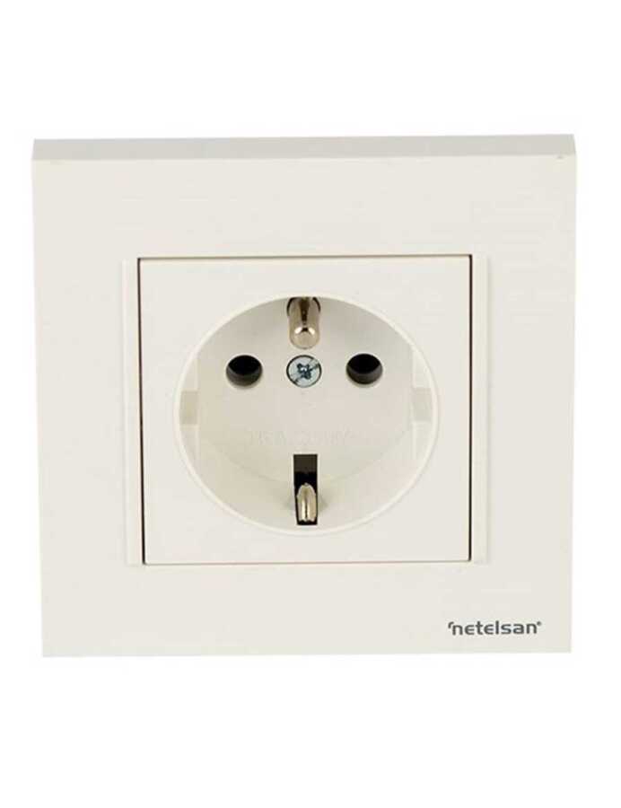 Netelsan M.U.Prz.50200 Byobu İkili Ups Priz (Çocuk Korumalı) Mekanik Kapak Beyaz Çerçevesiz - M.U.PRZ.50000 - Anahtar ve Priz
