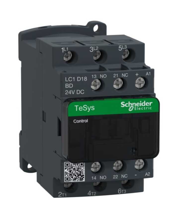 Schneider LC1D18BD Tesys D KontaktörSchneider LC1D18BD Tesys D Kontaktör, 7,5 kW güç kapasitesine ve 18A akım taşıma kapasitesine sahip, DC gerilim ile çalışan endüstriyel bir kontaktördür. 24V DC çalışma gerilimi ile çalışan bu model, 1 Normalde Açık (NO) ve 1 Normalde Kapalı (NC) kontak konfigürasyonuna sahiptir. Bu kontaktör, kompakt tasarımı ve yüksek dayanıklılığı ile motor kontrolü, otomasyon ve diğer endüstriyel uygulamalar için idealdir.Temel Özellikler:Model: LC1D18BDGüç Kapasitesi: 7,5 kWAkım Kapasitesi: 18AÇalışma Gerilimi: 24V DCKontak Yapısı: 1NO (Normalde Açık) + 1NC (Normalde Kapalı)Uygulama Alanları: Motor kontrolü, endüstriyel otomasyon, enerji yönetimiÜrün Avantajları:Yüksek Performans: 7,5 kW güce kadar motorların güvenli ve verimli bir şekilde çalışmasını sağlar.Esnek Kullanım: 1NO ve 1NC kontakları ile geniş uygulama alanlarında kullanılabilir.Dayanıklılık: Uzun ömürlü kullanım için dayanıklı yapı ve güvenilir performans sunar.Kompakt Tasarım: Elektrik panolarında yer tasarrufu sağlayacak şekilde kompakt bir tasarıma sahiptir.Güvenilirlik: Schneider kalitesi ile üretilmiştir, yüksek güvenlik standartlarına sahiptir.Kullanım Alanları:Motor Kontrolü: Motorların güvenli şekilde kontrol edilmesini sağlar.Endüstriyel Otomasyon: Fabrika otomasyonu ve süreç kontrolü için idealdir.Enerji Yönetimi: Enerji dağıtım ve yönetimi uygulamalarında güvenli anahtarlama sağlar.HVAC Sistemleri: Isıtma, havalandırma ve klima sistemlerinde kullanılabilir.Elektrik Panoları: Kompakt tasarımı sayesinde elektrik panolarında kolayca monte edilebilir.Schneider LC1D18BD, DC gerilimli endüstriyel uygulamalar için yüksek performanslı ve güvenilir bir çözüm sunar.