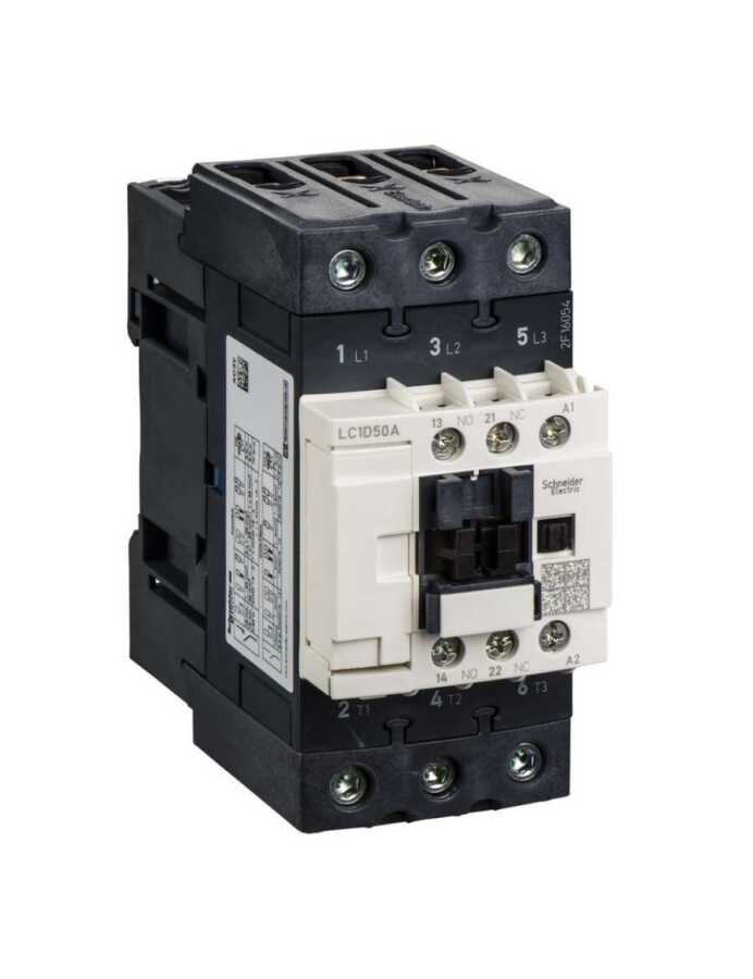 Schneider LC1D50AM7 22 Kw 50A 220V Ac 1 No 1 Nc Tesys D Kontaktör;Schneider LC1D50AM7, 22 kW güç kapasitesine sahip ve 50 Amper akım kapasitesine sahip bir güç kontaktörüdür. 220V AC bobin gerilimi ile çalışır ve endüstriyel uygulamalar için yüksek performans sağlar. Bu kontaktör, motor kontrolü, pompalar ve diğer ağır yüklerin güvenli ve etkili bir şekilde yönetilmesi için tasarlanmıştır.Kullanım Alanları:Elektrik motorları ve pompalarEndüstriyel otomasyon sistemleriIsıtma ve soğutma sistemleriMakine kontrol panelleriGüç anahtarlama ve kontrol uygulamalarıTeknik Özellikler:Akım Kapasitesi: 50 AGüç Kapasitesi: 22 kWGerilim: 220V AC (Bobin Gerilimi)Kutuplar: 1 No (Normalde Açık), 1 Nc (Normalde Kapalı)Bobin Gerilimi: 220V ACKontak Yapısı: 1 No (Normalde Açık), 1 Nc (Normalde Kapalı)Ürün Avantajları:Yüksek akım kapasitesi ile büyük yükleri kontrol etme yeteneği220V AC bobin gerilimi ile geniş uygulama uyumluluğuDayanıklı yapı ve uzun ömür, düşük bakım ihtiyacı1 No ve 1 Nc kontak yapısı sayesinde esnek kontrol imkanıEndüstriyel otomasyon uygulamaları için güvenilir performans