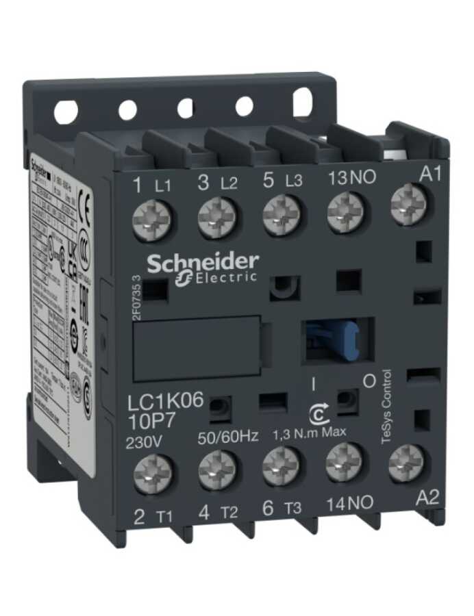 Schneider LC1K1610B7 7,5 KW 16A 24V Ac 1 No TeSys k Kontaktör;Schneider LC1K1610B7, TeSys K serisine ait bir kontaktördür. Bu model, 7,5 kW gücünde ve 16A akıma dayanıklıdır. 24V AC bobin gerilimi ile çalışır ve 1 Normal Açık (NO) kontak içerir. Özellikle endüstriyel otomasyon sistemlerinde ve motor kontrol uygulamalarında kullanılmak üzere tasarlanmıştır.Kullanım Alanları:Motor kontrol sistemleriEndüstriyel otomasyon panelleriEnerji yönetimi ve dağıtım sistemleriElektrik makineleri ve ekipmanlarıYük kontrol ve anahtarlama uygulamalarıTeknik Özellikler:Model: LC1K1610B7Güç: 7,5 kWAkım: 16ABobin Gerilimi: 24V ACKontak Yapısı: 1 Normal Açık (NO)Seri: TeSys KTip: AC kontaktörUygulama: Motor kontrol ve endüstriyel otomasyonÜrün Avantajları:Yüksek Güç Kapasitesi: 7,5 kW gücünde yüksek performans sağlar.Düşük Bobin Gerilimi: 24V AC bobin gerilimi ile çalışarak enerji verimliliği sunar.Dayanıklılık: TeSys K serisinin sunduğu dayanıklılık ve uzun ömürlü tasarım.Kolay Montaj: Standart montaj ve bağlantı seçenekleri ile kolay kurulum sağlar.Güvenilir Performans: Endüstriyel uygulamalar için güvenilir ve sürekli performans sunar.