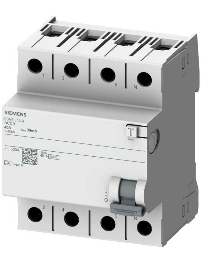 Siemens 5SV5346-6 A Tipi Hata Akımı Koruma Anahtarı-Fı (Kaçak Akım Koruma Rölesi) 63A- 400V- 30Ma- 3P N - 5SV5346-6 - Kaçak Akım Koruma